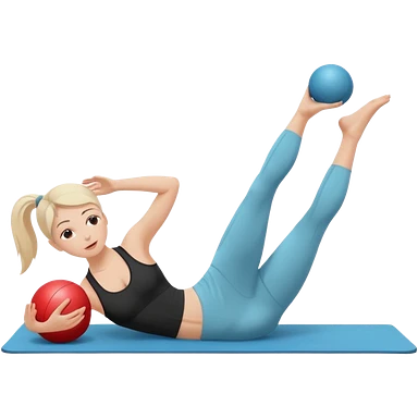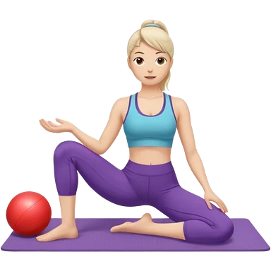 generate a pretty woman doing pilates on a mat with a small ball emoji