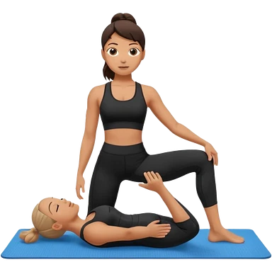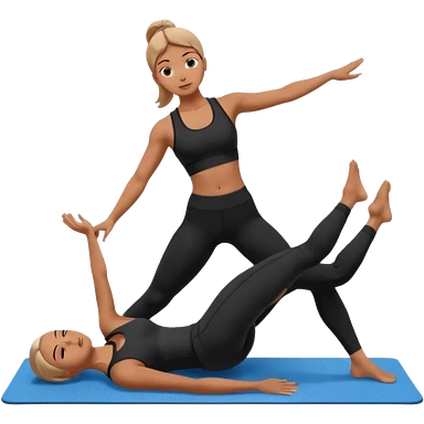 generate a pretty woman in black gym clothes doing pilates on a blue mat emoji