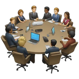 a woman developer in a meeting on a table, with others developers, in the background a mainframe computer emoji