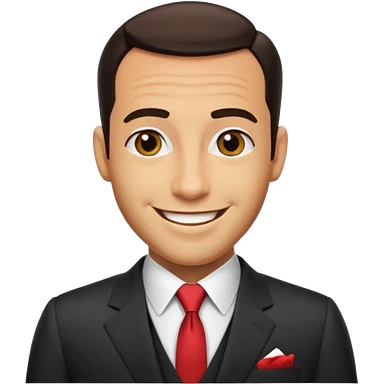 memoji of a male with a laptop in front,apple-style,modern,black hair,black suit,computer in hand --ar 1:1 emoji