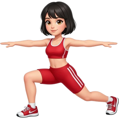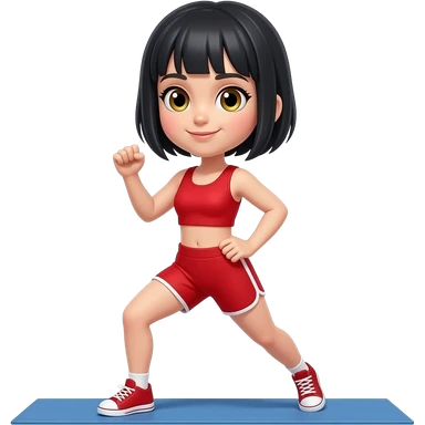 Con cabello corto negro con ropa roja ojos miel cuerpo completo ejercicio emoji