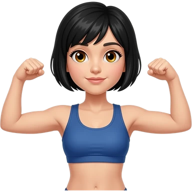 chica de cabello oscuro y corto, con ojos color cafe, haciendo ejercicio emoji