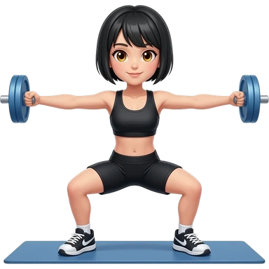 Con cabello corto negro ojos miel cuerpo completo ejercicio emoji