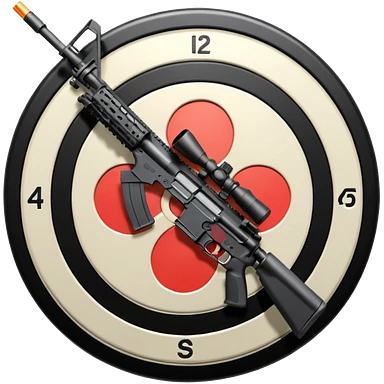 A detailed rifle with iron sights aimed at a target with concentric rings. The target is centered, emphasizing accuracy and focus in sports shooting, with no shooter visible, just the rifle and target in a calm, precision-driven setting emoji