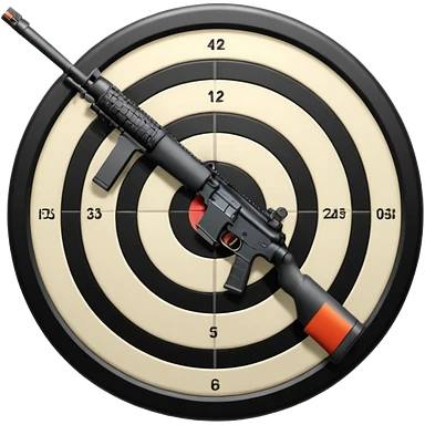 A detailed image of an AR-15 aimed at a target, with the target's concentric rings clearly visible. The focus is on the precision and accuracy of the sport, with the rifle positioned in front of a neutral background, emphasizing the equipment and the competitive nature of shooting. emoji