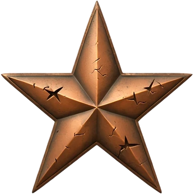 Concept: A single, bronze-colored military star (like a Bronze Star or a general's star) that is slightly faded or has a "crack" graphic running through it.