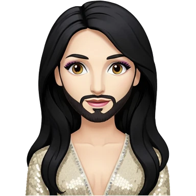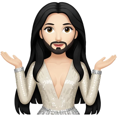 Conchita Wurst with long black hair, ivory sequin outfit emoji