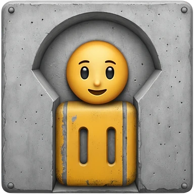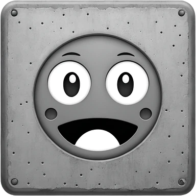 Concrete block building in brutalist style with one pink neon window and several standard windows emoji