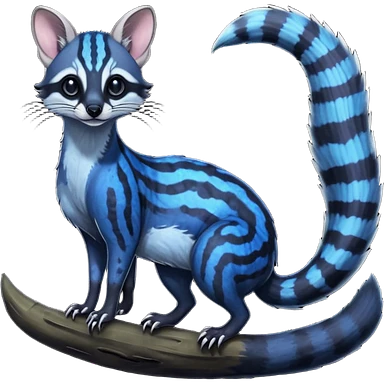 Feral Rare Fantasy iridescent scaly evil spooky vibrant dark shady shaded detailed deep-dark-cobalt-blue-gradients-colored colorful Genet-Trico-Civet-Cacomistle-Margay-species by LiLaiRa, with dark-blackish points, white belly, random markings, tufted tail, tufted ears, full body emoji