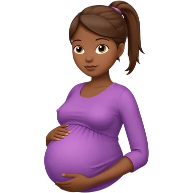 pregnant woman, brown hair, dark skin, ponytail, only abdomen, neck and head emoji