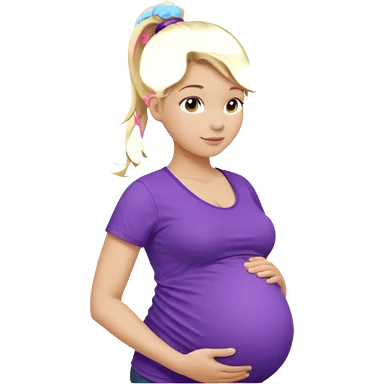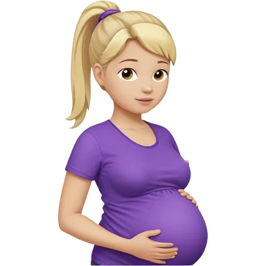 pregnant woman with purple shirt. Blond hair, light skin, pony tail. Only show abdomen neck and head. emoji