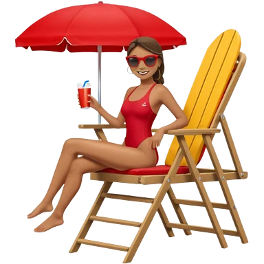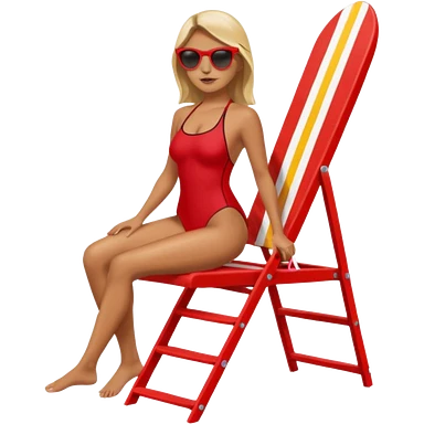 Female lifeguard – red swimsuit, sunglasses, sitting on tall lifeguard chair. emoji