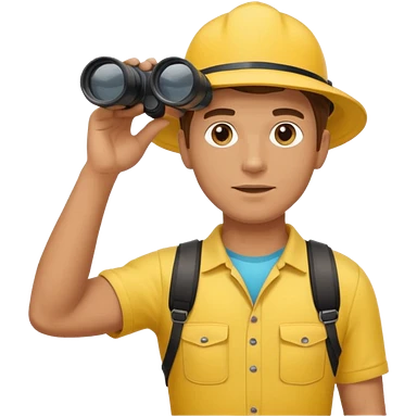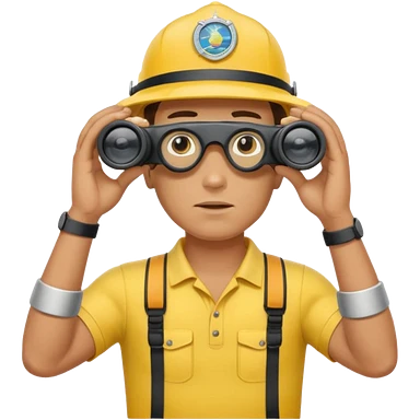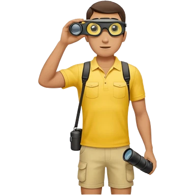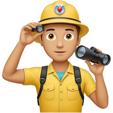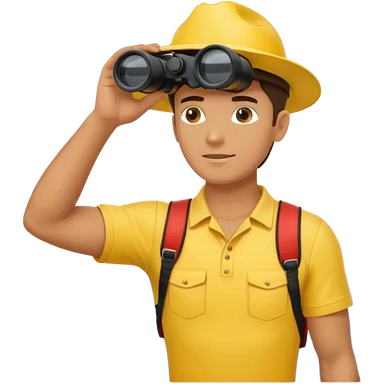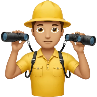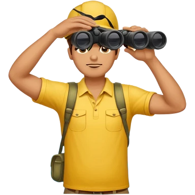 Male lifeguard – yellow shirt, binoculars in hand, scanning the sea emoji