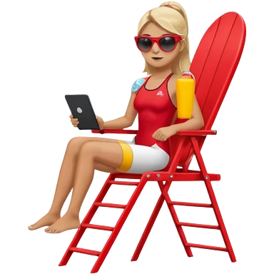 Female lifeguard – red swimsuit, sunglasses, sitting on tall lifeguard chair. emoji