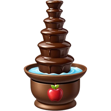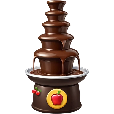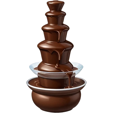 3D render of Chocolate Fountain, made entirely of dessert materials, glistening sugar crystal texture, flowing liquid dark brown chocolate, delicious confectionery aesthetic, Apple emoji style, isolated on white background --v 6.0. emoji