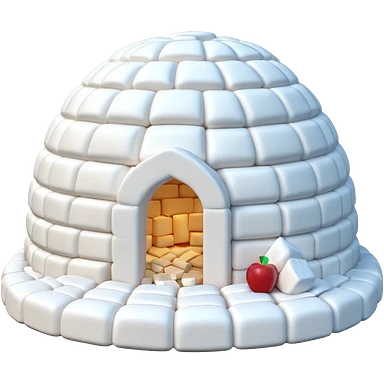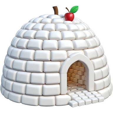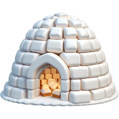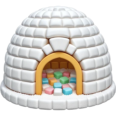 3D render of Marshmallow Igloo, made entirely of dessert materials, glistening sugar crystal texture, soft powdery white marshmallow bricks, delicious confectionery aesthetic, Apple emoji style, isolated on white background --v 6.0. emoji