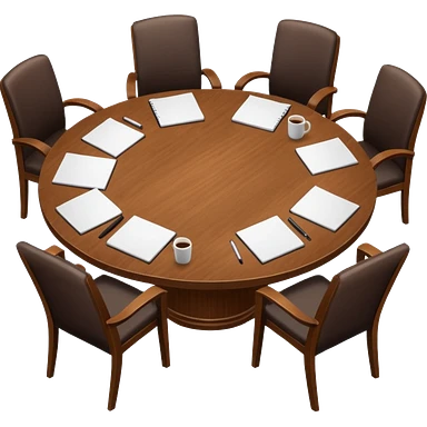 Round conference table with several empty chairs around it and a notepad in the center emoji