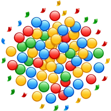 Una cara roja con naranja con rayos que explotan y llena de confeti emoji