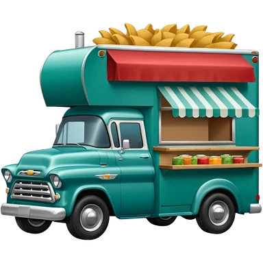 A 2022 half ton bluish green Chevrolet pulling a chuck wagon style food truck emoji