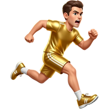 🏆 emoji, intense energetic face, running fast, fire trails, coral orange background, metallic gold sheen, dynamic pose, high quality emoji