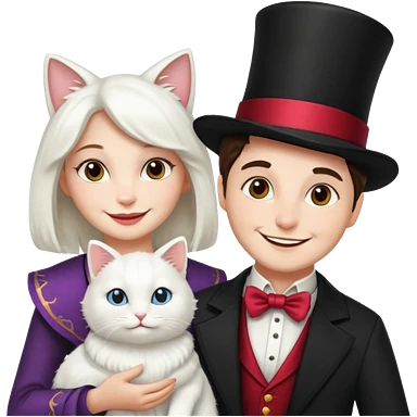 magician couple and their pet cat emoji