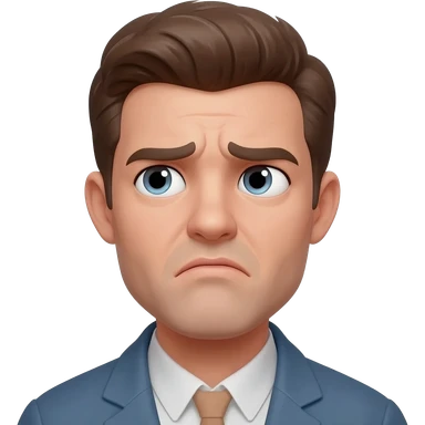 ordinary Russian office worker emoji, clumsy and confused face, 📎 stuck in hair, coffee stain on tie, one shoe untied, huge eyes with question marks, minimal emoji style, thick outlines, bright pastel colors, kawaii flat design emoji