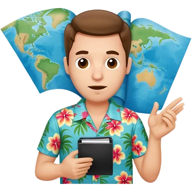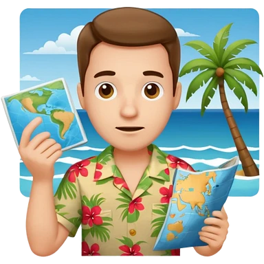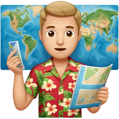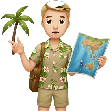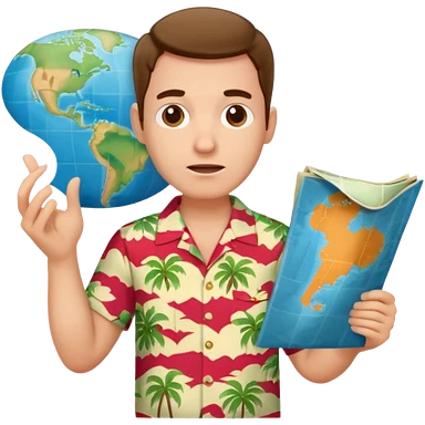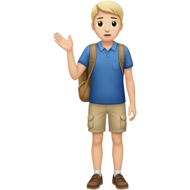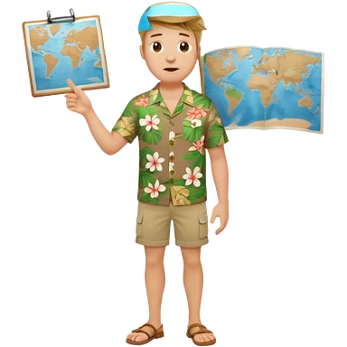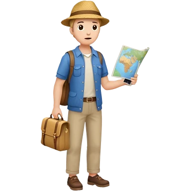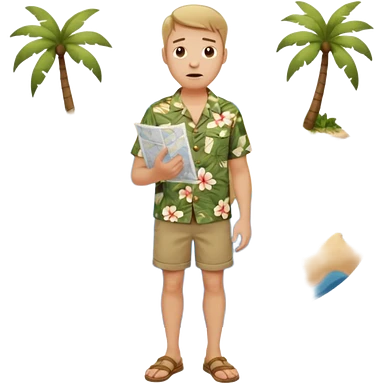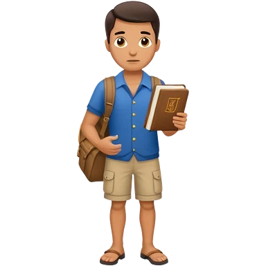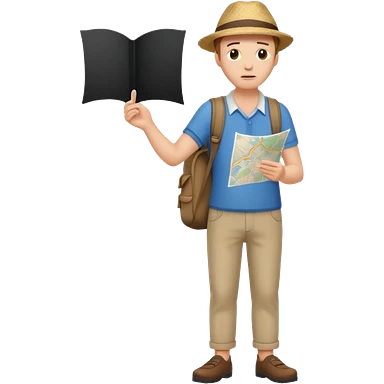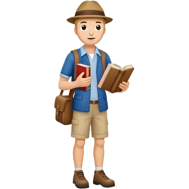 confused tourist full body, normal clothes, with a German dictionary emoji