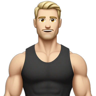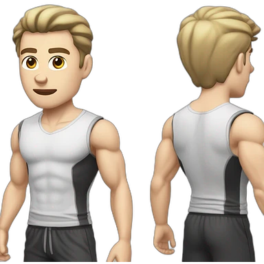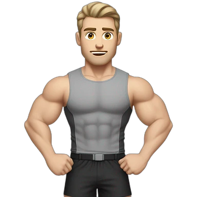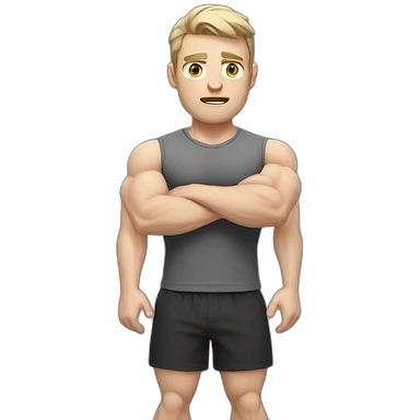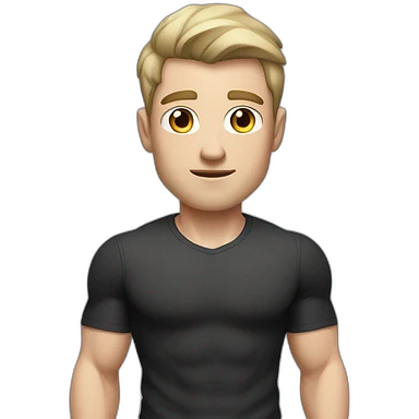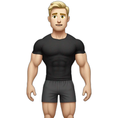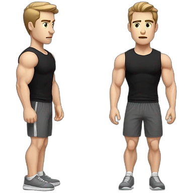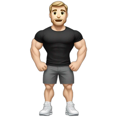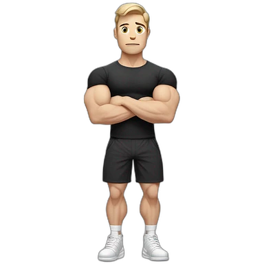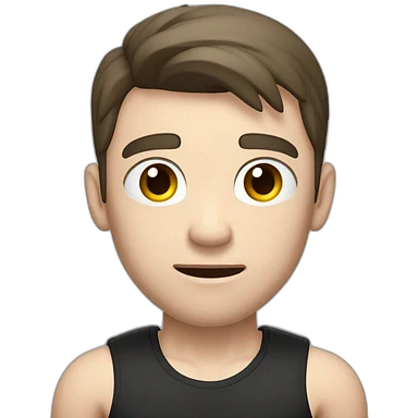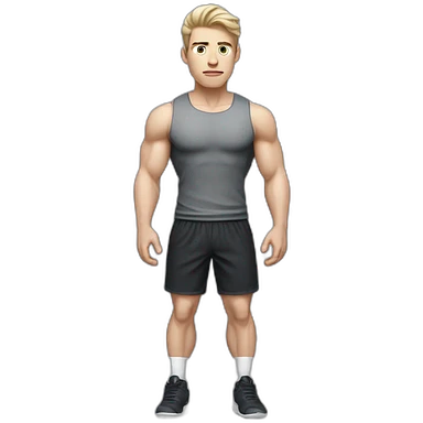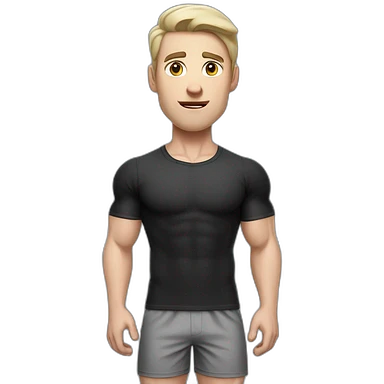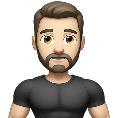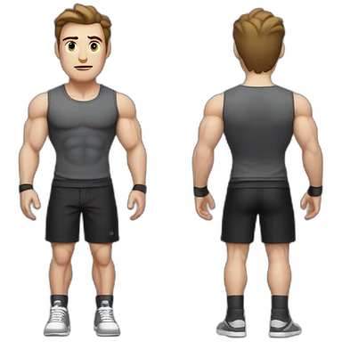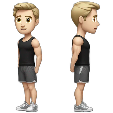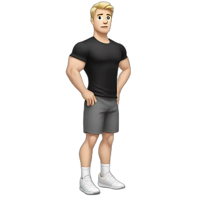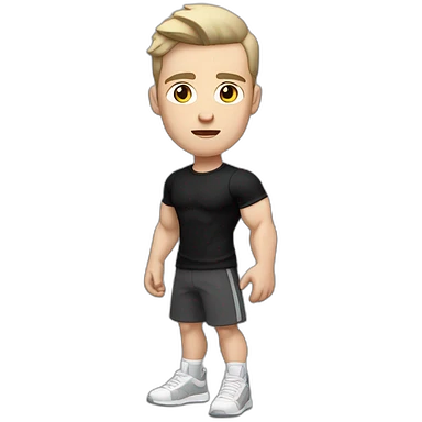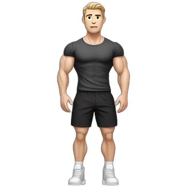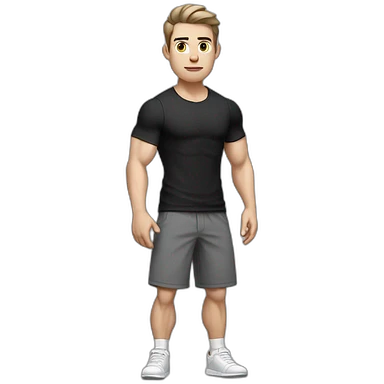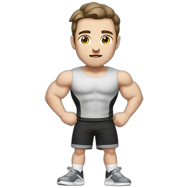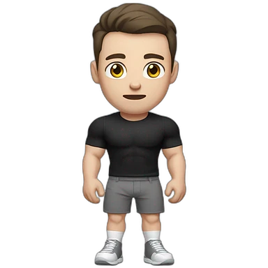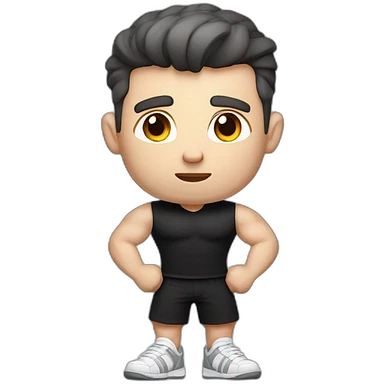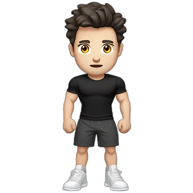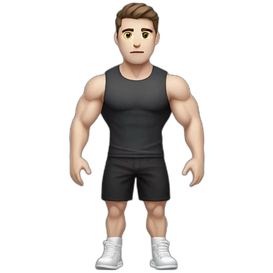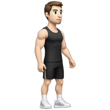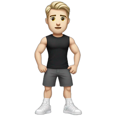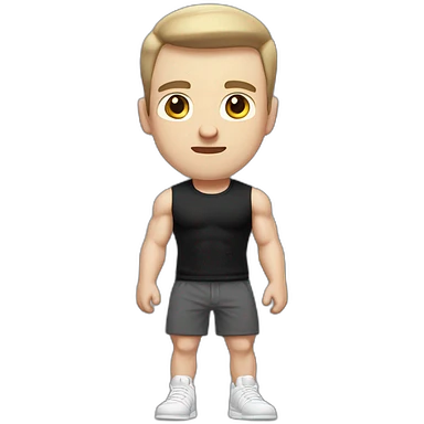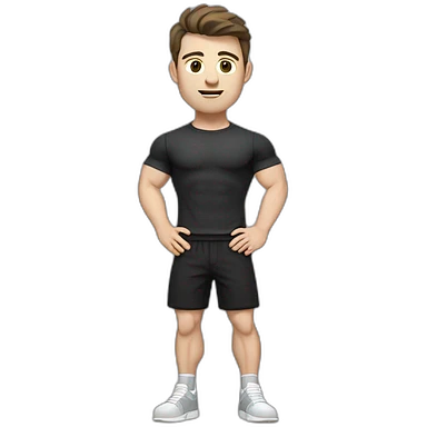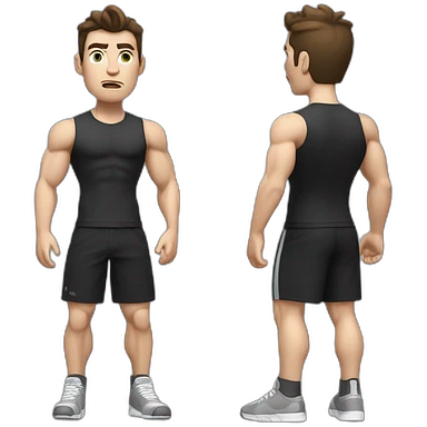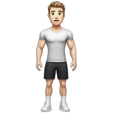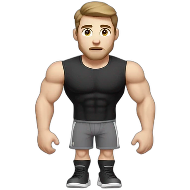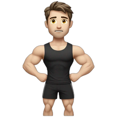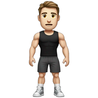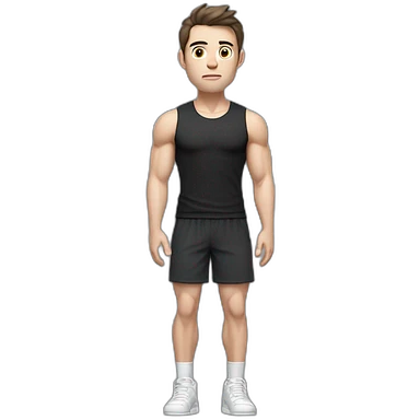 Confused Pale skinned Fit Man With the biceps and dark brown hair in black shirt, gray sports shorts and white Sneakers emoji | AI Emoji Generator