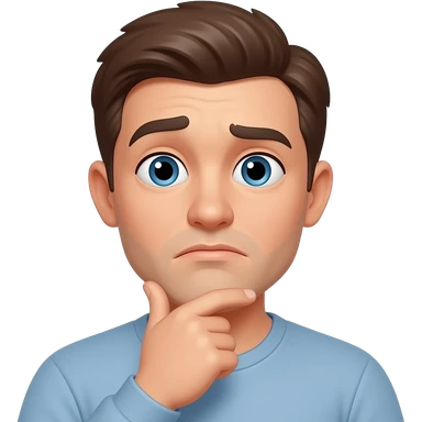 CONFUSED / THINKING (2 STAR) One eyebrow raised Eyes looking slightly sideways Mouth small and unsure One mirror-hand touching chin (thinking pose) Slight head tilt emoji | AI Emoji Generator