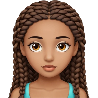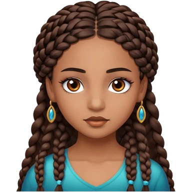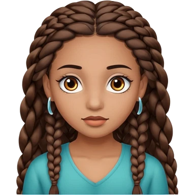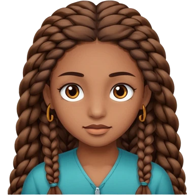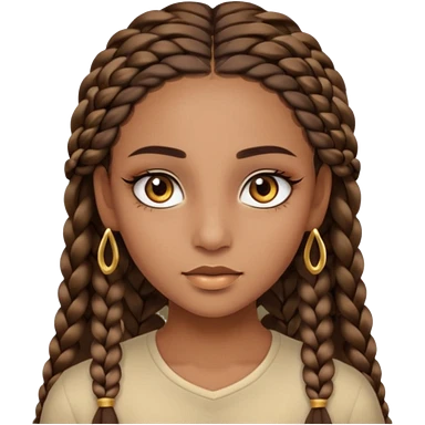 girl with thin braids long hair and brown eyes, brown skin, eyelashes, siren eyes emoji