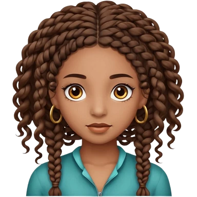 girl with thin braids with curls and brown eyes, brown skin, eyelashes, siren eyes emoji