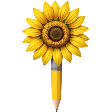A hyper-realistic object that is half sunflower and half wooden pencil, merging seamlessly at the midpoint. Bright yellow petals, natural textures, detailed graphite tip, soft studio lighting, high-resolution. emoji