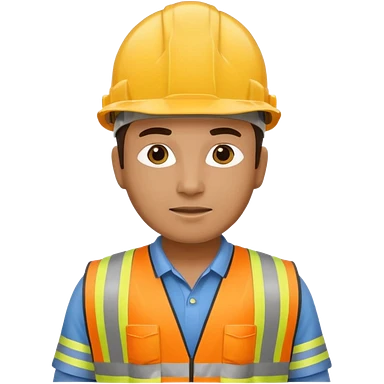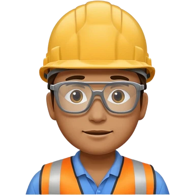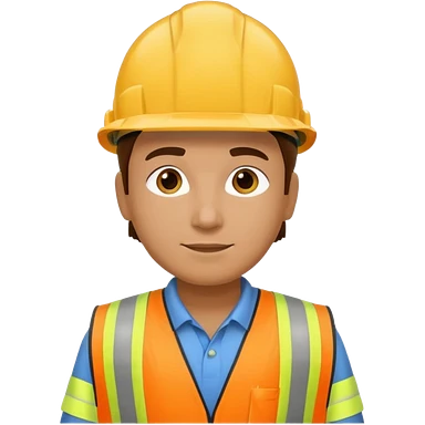 construction worker, full head shot, 3/4 view of face, white hard hat, male, adult, slight stubble, strong jawline, clear eyes visible, color palette: white, beige, gray and brown emoji | AI Emoji Generator