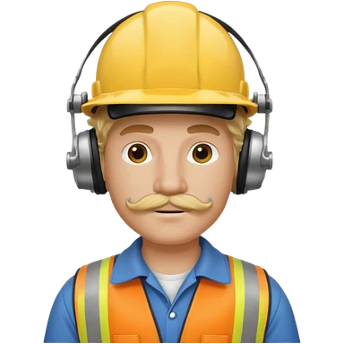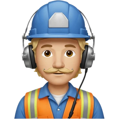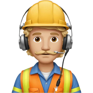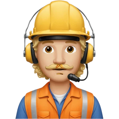 construction worker with blond long curly hair and protective headphones and mustache emoji