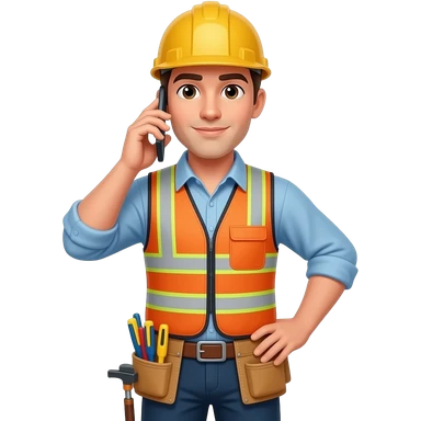 general contractor on a call holding their smartphone with a tool belt and no safety vest or helmet emoji