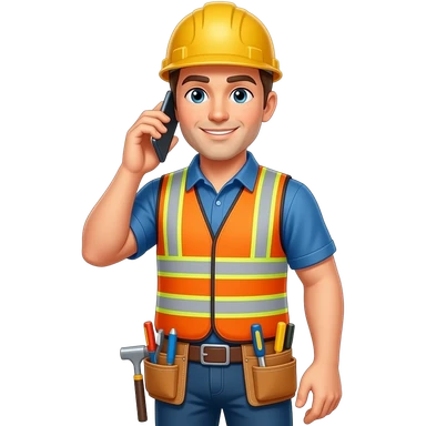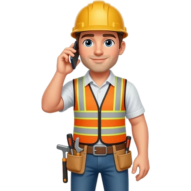 general contractor without a safety vest or helmet on a call holding their smartphone with a tool belt emoji