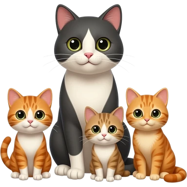 quattro gatti: una mamma con tre gattini (uno rosso) emoji