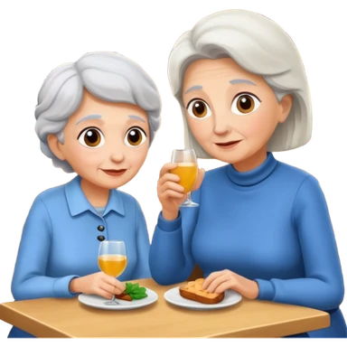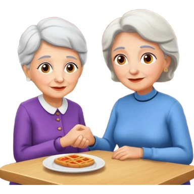 conversación dentro de un restaurant dos personas y una de las persoans sea una abuela y el otro un adulto de 27 años emoji | AI Emoji Generator