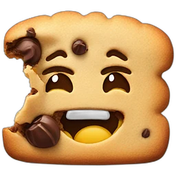 chocolate chip cookie with a bite taken out, crumbs around the edge, colorful minimal emoji style emoji