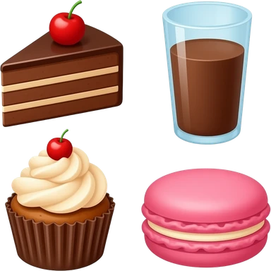 Cookies, Chocolate cake, Chocolate milk, Cupcake, Cake, Macaroons. emoji