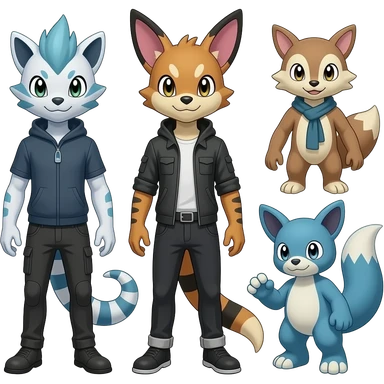 Cool Anthro Dark Absol-Noivern-Quilava-Litten-Pokémon with edgy stripes hoodie spiked collar punk Full Body emoji
