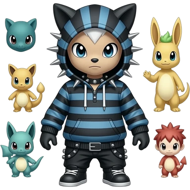 Cool Dark Edgy Absol-Noivern-Quilava-Litten-Pokémon with edgy stripes hoodie spiked collar punk Full Body emoji