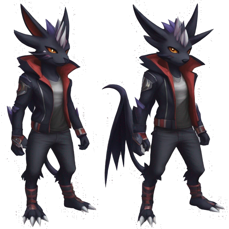 Cool Anthro Black Noivern-Absol-Litten-Pokémon with edgy stripes hoodie spiked collar punk Full Body emoji