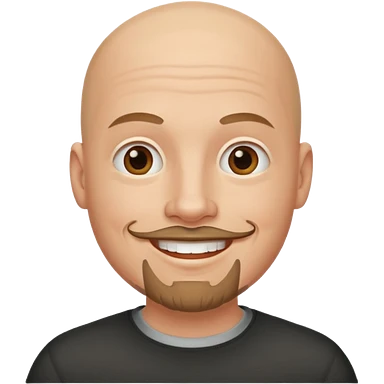 Oliver Riedel, apple style emoji, bald, mustache and goatee, cool, collected vibe, black shirt emoji