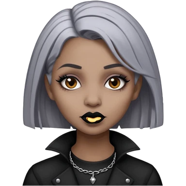 Cool Brooklyn girl brownish red hair green eyes goth big lips cat eyeliner emoji