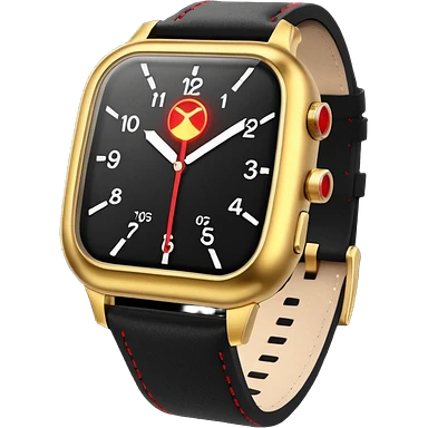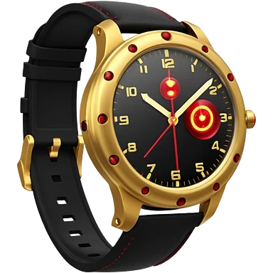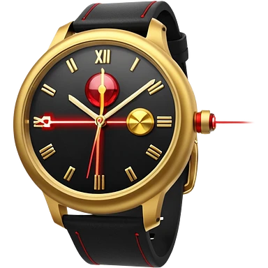 3D render of Laser Watch, secret agent spy gear aesthetic, hidden mechanisms, gold luxury wristwatch emitting a tiny red laser beam, sleek tactical texture, Apple emoji style, isolated on white background --v 6.0. emoji
