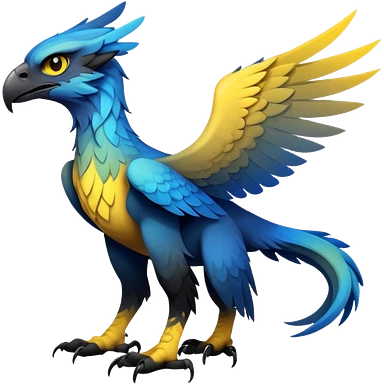 Cool Edgy blue-yellow-black-gradient ethereal badass Raptor-Gryphon-Trico-animal-creature full body emoji