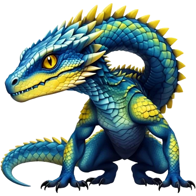 Cool Edgy blue-yellow-black-gradient ethereal badass Reptile-Vernid-Trico-animal-creature full body emoji
