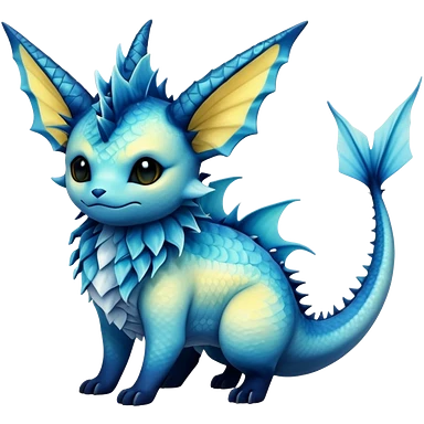 Cool Edgy blue-yellow-black-gradient ethereal badass Vaporeon-Vernid-Trico-animal-creature full body emoji