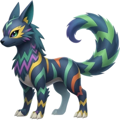 Hyper-realistic cool edgy badass zigzag-striped etched marked elegant Colorful Skilled Adept Graceful Asian Painted Meloetta-Furret-Lycanroc-Zangoose-fusion-hybrid-creature (full body) emoji